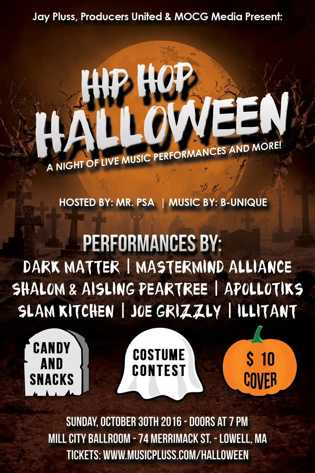Hip Hop Halloween Presented by: Jay Pluss, Producers United at Mill City Ballroom, Lowell, MA on October 30th, 2016
