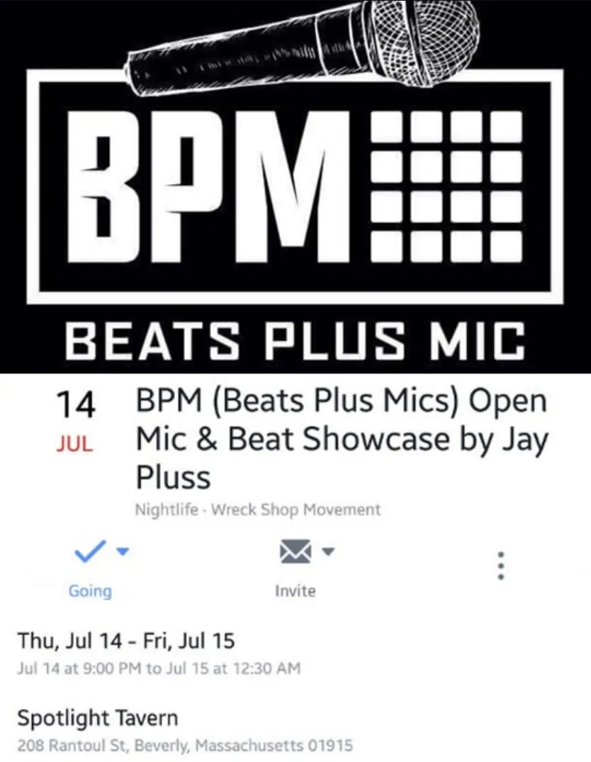 Beats Plus Mics: Jay Pluss at Spotlight Tavern, Beverly, MA on July 14th, 2016