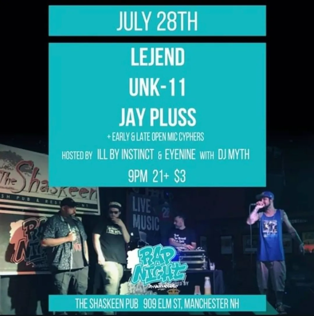 Rap Night: Jay Pluss Cypher at Shaskeen Pub, Manchester, NH on July 24th, 2019