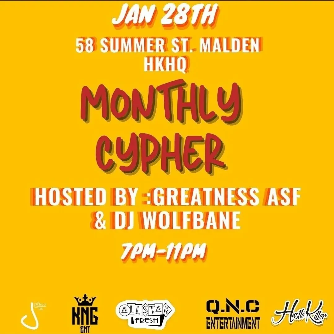 Monthly HK Cypher Featuring Jay Pluss at Hustler Killer – Malden, Malden, MA on January 28th, 2022