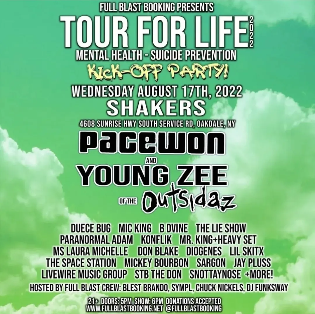 Tour For Life: Pace Won and Young Zee at Shaker's Pub, Oakdale, NY on August 17th, 2022