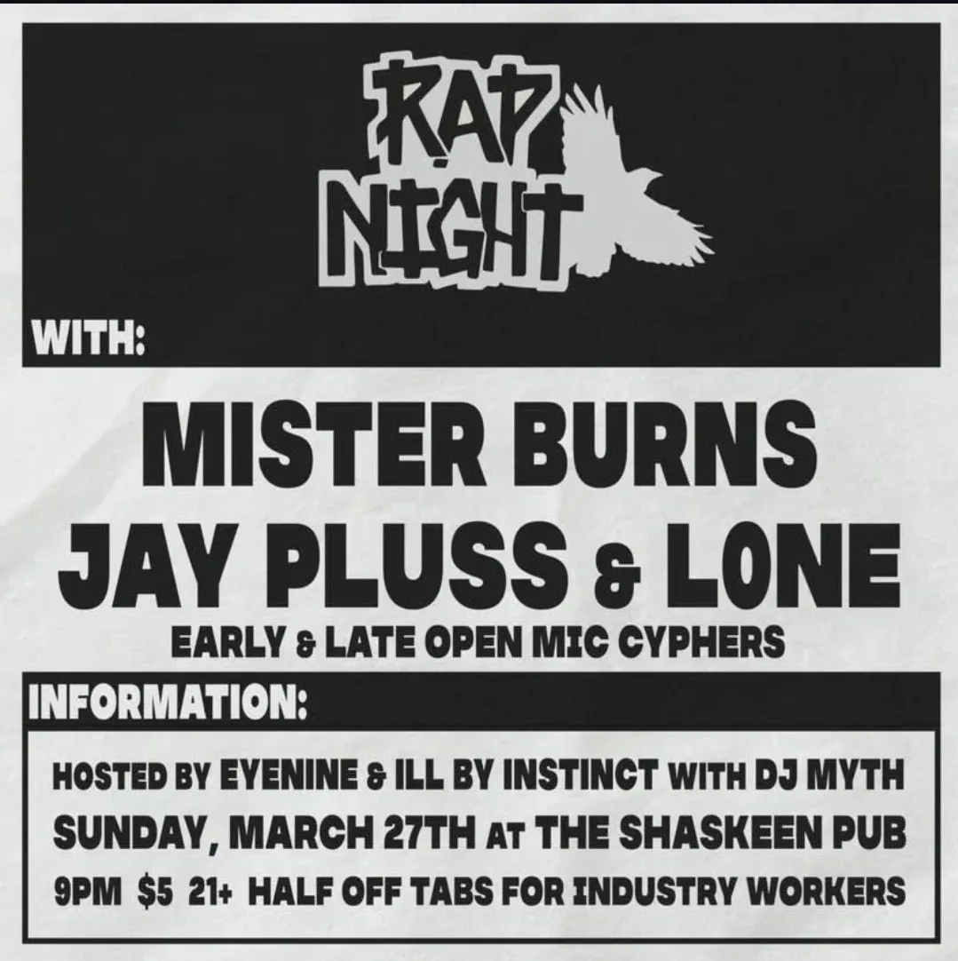 Rap Night Manchester at Shaskeen Pub, Manchester, NH on March 27th, 2022