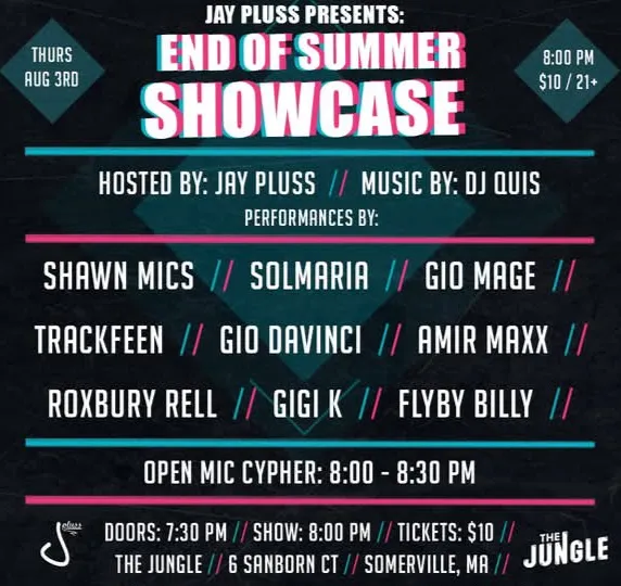 Jay Pluss Presents: End of Summer Showcase 2023 at The Jungle, Somerville, MA on August 3rd, 2023